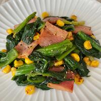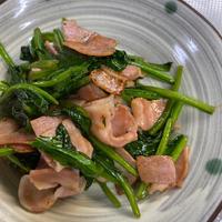 ほうれん草とベーコンを炒めて、バターしょうゆで味つけした、とっても簡単なソテーのご紹介です。時間のない時にもピッタリの一品ですよ。下ゆでしたほうれん草を切って炒めるだけなので、お料理初心者の方でもお作りいただけます。ぜひお試しくださいね。