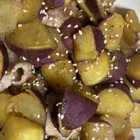 蓮根をプラス、さつまいもと一緒に600w4分ほどレンチン!こっくり美味しかった!