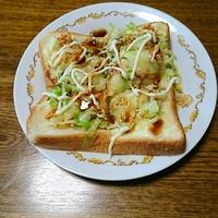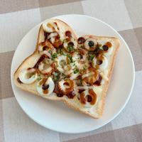 - 3 食パンにマヨネーズを塗って2をのせた上にスライスチーズをのせます。アルミホイルを敷いた天板にのせ、オーブントースターで5分焼きます。