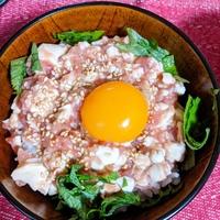 - 4 器にごはんを盛りつけ、3を乗せます。1、白いりごまを散らして卵黄を乗せて完成です。