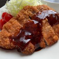 - 4 お皿に3、付け合わせを盛り付け、中濃ソースを添えて完成です。