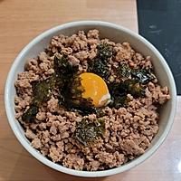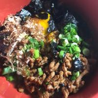 ひき肉と(B)の調味料は全て半量にしましたが十分でした。味付けも丁度良く、混ぜて卵黄と一緒に頂くと絶品です。生のニラもシャキシャキで美味しいですね。また作ります。