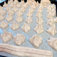 - 4 へらでさっくり混ぜたら好きな形に絞り出して100℃のオーブンで50分程度焼きます。