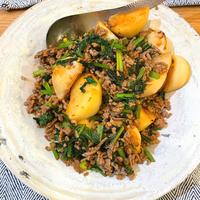 カブの甘みと柔らかな食感が際立つ一品です。カブの葉まで丸ごと使えるのが魅力で、ひき肉と一緒にジューシーに仕上がります。オイスターソースの旨みと五香粉の香りが食欲をそそり、ご飯がどんどん進む味付けです。最後に片栗粉でとろみをつけると、ひき肉がまとまりよく食べやすくなります。きのこや人参を加えてアレンジするのもおすすめ。簡単に作れて子供から大人まで楽しめる一品です。