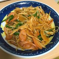 家にあるもので代用し、ベーコン、小松菜などを入れました。もやしでナポリタン?!と半信半疑でしたが、ナポリタン味がもやしのシャキシャキ感と意外に合ってとても美味しいです☆🙂✨