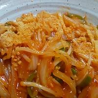 見た目はまるでナポリタンスパゲティ!?スパゲティの代わりにモヤシを使ってなナポリタン風の味付けに仕上げました。お財布にも優しいモヤシが大活躍してくれる一品です。シャキシャキとした食感も楽しめるのでオススメです。