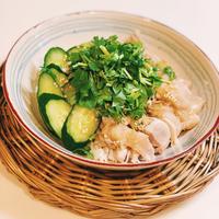 レンジで簡単に出来る、シンガポール風鶏飯のご紹介です。ゆで汁に調味料を合わせることで、より深みのあるタレになります。添えたパクチーの香やきゅうりの食感が、良いアクセントになり、どんどんお箸が進みますよ。
