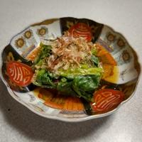 - 4 器に盛り付けて、かつお節を乗せて完成です。