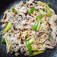お酒のあてに。豚肉と家にあった野菜、ピーマンと小松菜をいれました。塩辛多めで濃いめの味になったので、仕上げに黒コショウかけました。お酒に合いますね😊✨