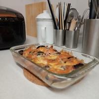 家庭菜園で育てたズッキーニで作りました。大きめサイズなので、なすは抜き。とても美味しかったです。焼く前に少しオリーブオイルをかけました。
