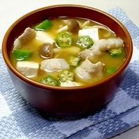 豚バラ肉とオクラの味噌汁 レシピ・作り方
