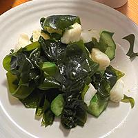 - 1 わかめはたっぷりの水でパッケージの表記に従い戻し、水気を切ります。