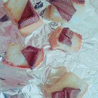 - 6 5を3の表面の半分に塗り、刻んだチョコレート残りの半分に乗せます。