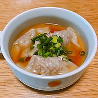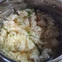- 4 鍋にお湯を沸かし、3、スープの材料を入れ5分程度ワンタンに火が通るまで、 中火で煮込みます。
