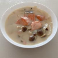 あさりも入れてみました。豆乳のちょっとアッサリめのスープに鮭とあさりの旨味がしっかり出て、とても美味しいシーフードシチューになりました♪