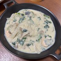 ほうれん草がなかったので色が寂しいですが、濃厚でとてもおいしかったです