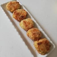 きのこ抜きのコーン多めで作りました!タネは7時間くらい寝かしたと思います!寝かす前から結構硬めのタネになったのですが、思ってたより形作るのが難しかったです!ただしっかりしてるので卵とパン粉さえつけてしまえばそれなりの見栄えになりました!笑笑