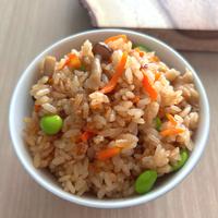 しっかりとした味付けで、具材も自由にアレンジできる人気の炊き込みご飯です。舞茸やしめじなどのきのこの旨みが染み出し、にんじんや油揚げの風味も加わって深い味わいに。枝豆を加えると彩りよく、食感のアクセントにもなります。炊飯器に材料を入れるだけの簡単レシピなのに、ふっくらと美味しく炊き上がります。おこげができると更に美味しく、おにぎりにしても絶品です。