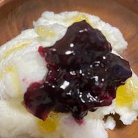 ブルーベリージャムとはちみつをかけました、素朴な味なので砂糖はちょっと多めがいいと思います。