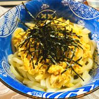 胸肉と卵を準備したら、まさかの白米なし。うどんに乗せてみました。これが超まいうー。