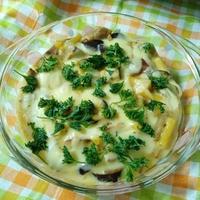 - 7 全体に味がなじだら火から下ろし、耐熱皿に入れてピザ用チーズをかけます。焼き色が付くまでオーブントースターで10分ほど焼き、パセリをかけてできあがりです。