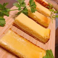 スクエア型でスティックチーズケーキ!混ぜるだけなので非常に簡単に出来ました!!クリームチーズを常温にしておくのがダマにならず🙆♀️