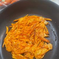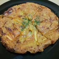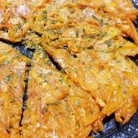スライサーでにんじんを細くし過ぎ、生地全体が厚すぎたせいかチヂミのようになりました、、無念