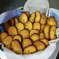 さつまいもは竹串などが通るまで茹でて、しっかりと裏ごしをしてください。 生地が柔らかすぎて伸ばせない時は薄力粉を10gずつ足して様子を見てください。 紫いも粉が場合は省いてもお作りいただけます。 紫いも粉がある場合は、しっかりと周りにつけてください。 オーブンは必ず予熱を完了させてから焼いてください。 予熱機能のないオーブンの場合は温度を設定し10分加熱を行った後、焼き始めてください。 ご使用のオーブンの機種や使用年数等により、火力に誤差が生じる事があります。焼き時間は目安にし、必ず調整を行ってください。 焼き色が付きすぎてしまう場合は、アルミホイルをかけてください。