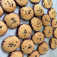 - 6 生地を1センチ幅に切り、黒ごまを載せて180度のオーブンで20分ほど焼けば完成です。