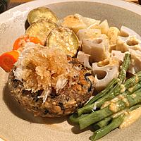 おろしポン酢でいただくのでとってもヘルシーなハンバーグ♪で美味しかったです😋