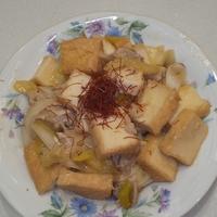 - 1 長ねぎは斜めにスライスし、厚揚げを一口大に切ります。
