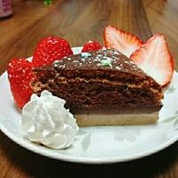 18センチ型で作りました。ココアパウダーが少し足りなかったですが、その分薄力粉足しました。ちゃんと3層になって美味しい。