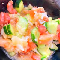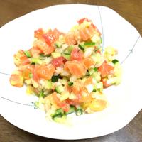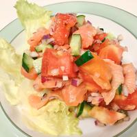 ・塩加減は、お好みで調整して下さい。 ・サーモンはスモークサーモンでも代用いただけます。スモークサーモンで作る場合は、レモン汁を多めに入れた方がさっぱりとしてオススメです。 ・強く揉み込み過ぎると、野菜から水気が出るので軽く揉み込むのがポイントです。 ・生ものですので早めにお召し上がりください。 ・紫玉ねぎは玉ねぎでも代用可能です。