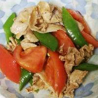 豚バラのしゃぶしゃぶ肉とスナップえんどう、トマトを組み合わせた、さっぱり味のサラダです。ポン酢とごま油で和えても美味しいですが、しょうゆと酢、レモン汁でポン酢のような味わいにして、ごま油と豆板醤と合わせました。ぜひ作ってみてくださいね。