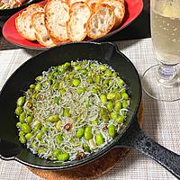枝豆としらすのアヒージョのご紹介です。枝豆の食感が楽しめる一品です。アンチョビを入れることで旨味が増しておいしくなります。お酒のおつまみやパーティメニューの一品としても重宝するレシピですよ。ぜひ、お試しくださいね。