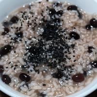 黒胡麻が無かったので金胡麻をトッピングしました😅 年に一度の小豆粥美味しく頂きました💕