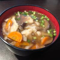 小麦粉を練った団子が入っているので、これ一品で十分お食事になるくらいボリュームがあり、かつ、具沢山で栄養も満点です。 今回はだし入りの合わせみそを使用しましたが、みそによって味が変わります。九州では麦味噌を使うことが多いです。