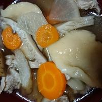 - 4 大根とにんじんは、皮をむき7mmの厚さのいちょう切りにします。