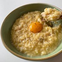 卵黄で濃厚 カルボナーラリゾット風 レシピ・作り方