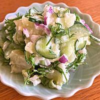 爽やかな香りが特徴的なディルを贅沢に使った、大人なポテトサラダです。マヨネーズにヨーグルトを加えて、程よい酸味とコクをプラスしました。スモークサーモンやハムを加えても美味しいです。お酒に合うので、おつまみとしてもよいです。