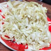 - 1 キャベツは千切りにします。