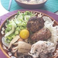 - 2 ボウルに牛豚合びき肉、卵、(A)を入れてよく混ぜ合わせ、粘り気が出てきたら1を入れます。