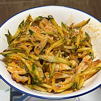- 1 きゅうりは幅5cmに切り、細切りにします。