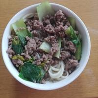 - 3 豚ひき肉に火が通ったら枝豆を加えさっと中火で炒め、油が回ったら水、めんつゆ、すりおろし生姜を加え中火で加熱します。