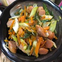 ベーコンもハムも無かったので、皮なしウインナーで代用しました🔆