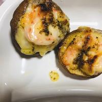 しいたけの中身の深さとエビの大きさでちょうど良く乗せるのがポイントだと思います。後はエビの上にチーズを崩れない様に工夫しながら乗せると良いです❗️