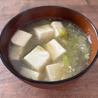 お豆腐が無い時でも、とろろ昆布と葱だけで作ったりしています。今日も長ネギが無くて小葱ですが美味しいです😋