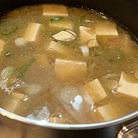 - 3 顆粒和風だしを加え、みそを溶いたら火からおろします。