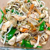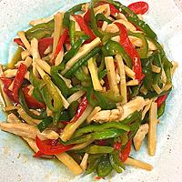 - 1 ピーマン、パプリカ、タケノコの水煮を細切りにします。