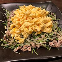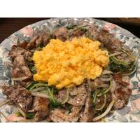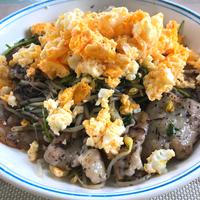 ふわとろ卵がのった豚バラもやしのしそマヨ炒め レシピ・作り方